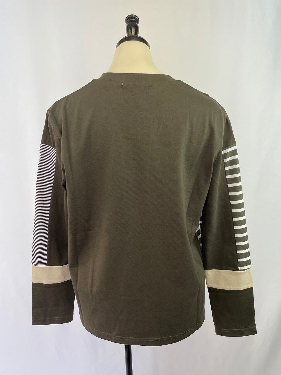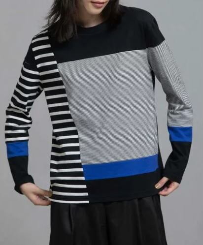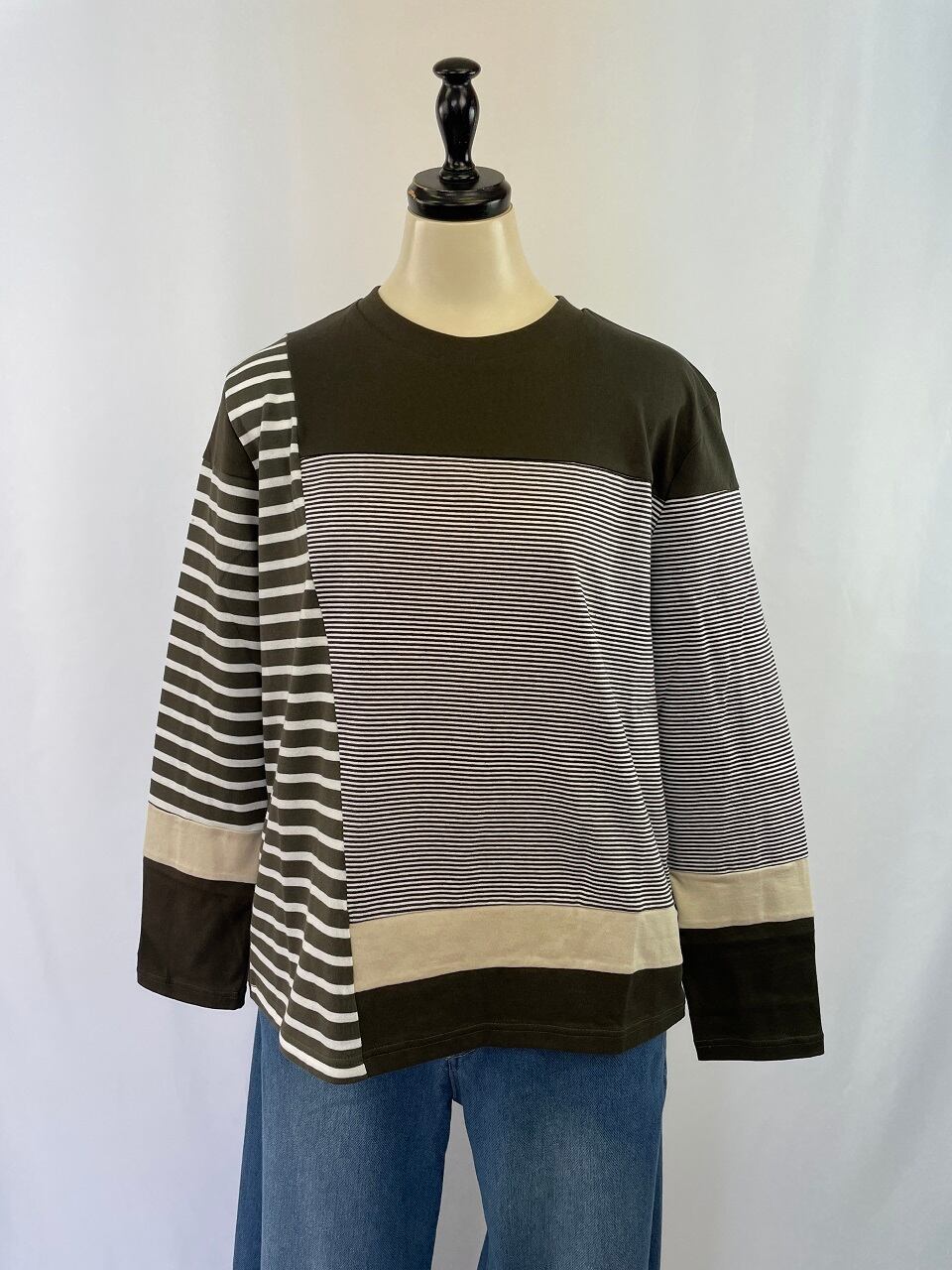 マルチピッチのボーダーをドッキングさせた遊び心のあるトップス。