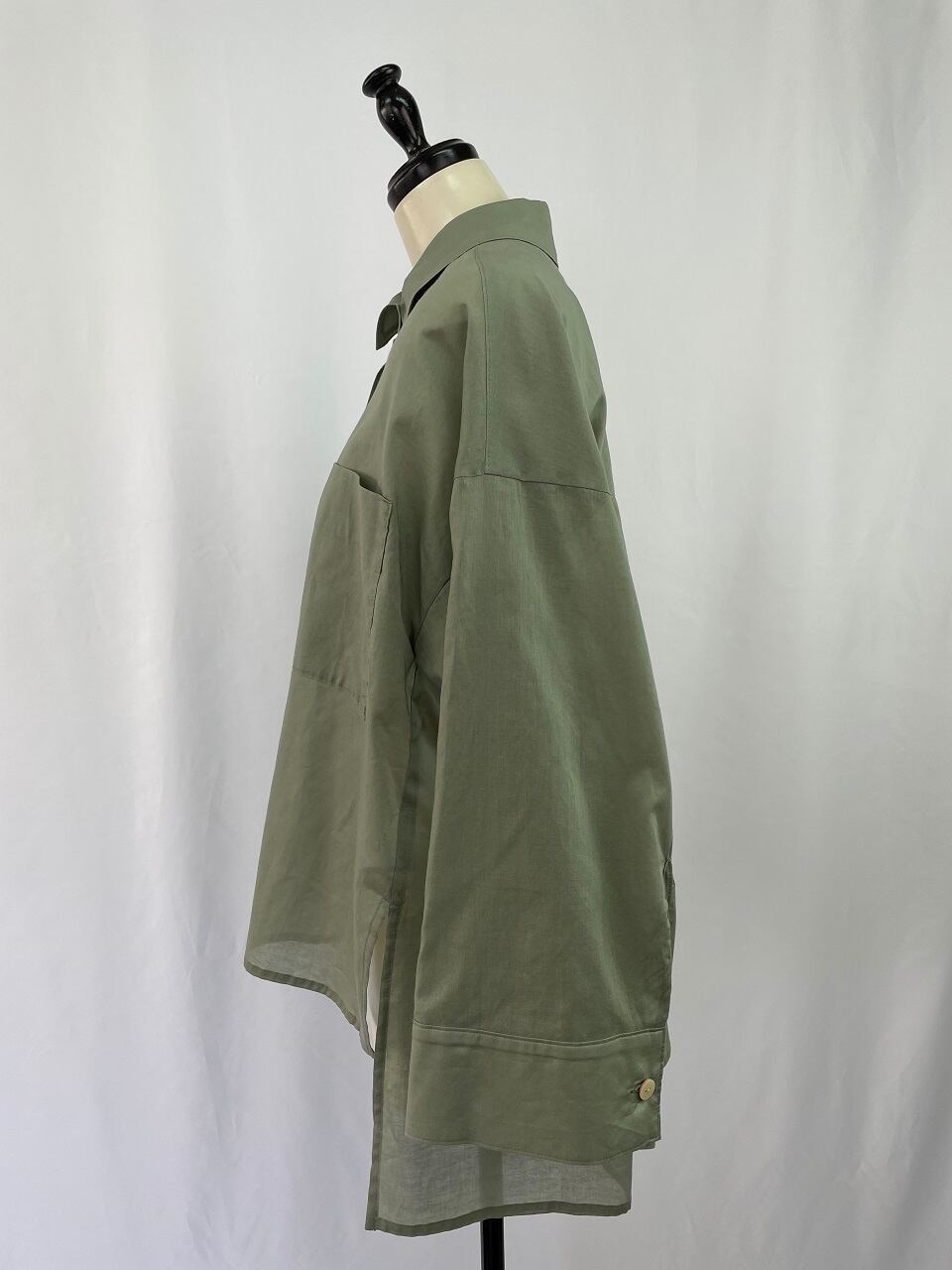 前後差のある裾デザインはスカートでもパンツでもコーディネートしやすく、ゆとりのある袖口も軽やかに着こなせるポイント。