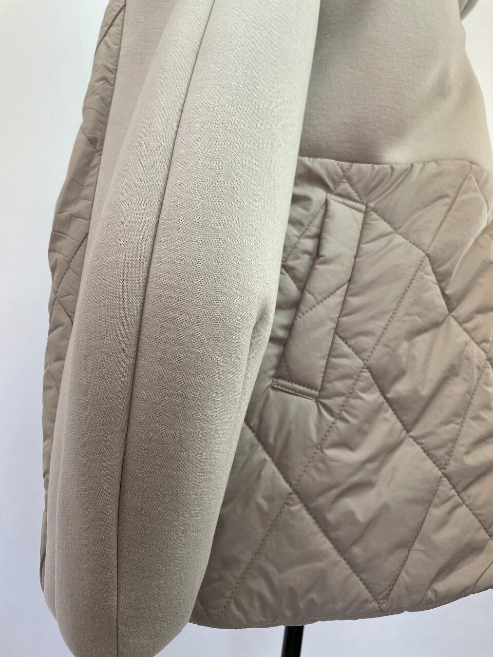 異素材の組み合わせが目を惹く、ボンディング素材と中綿入りキルティングをドッキングしたデザインアイテム。