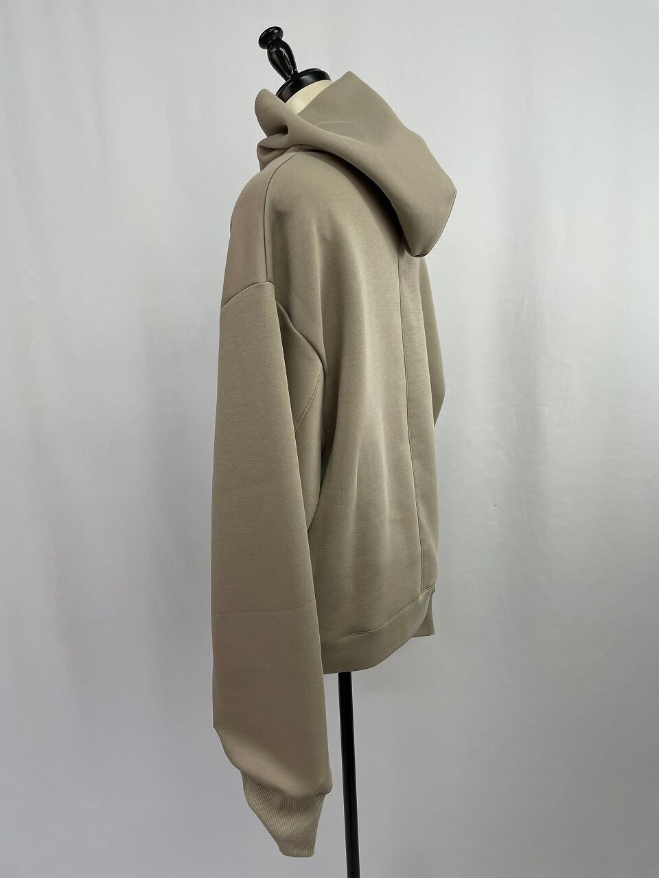 伸縮性のあるダンボール生地を使用したロゴパーカー。