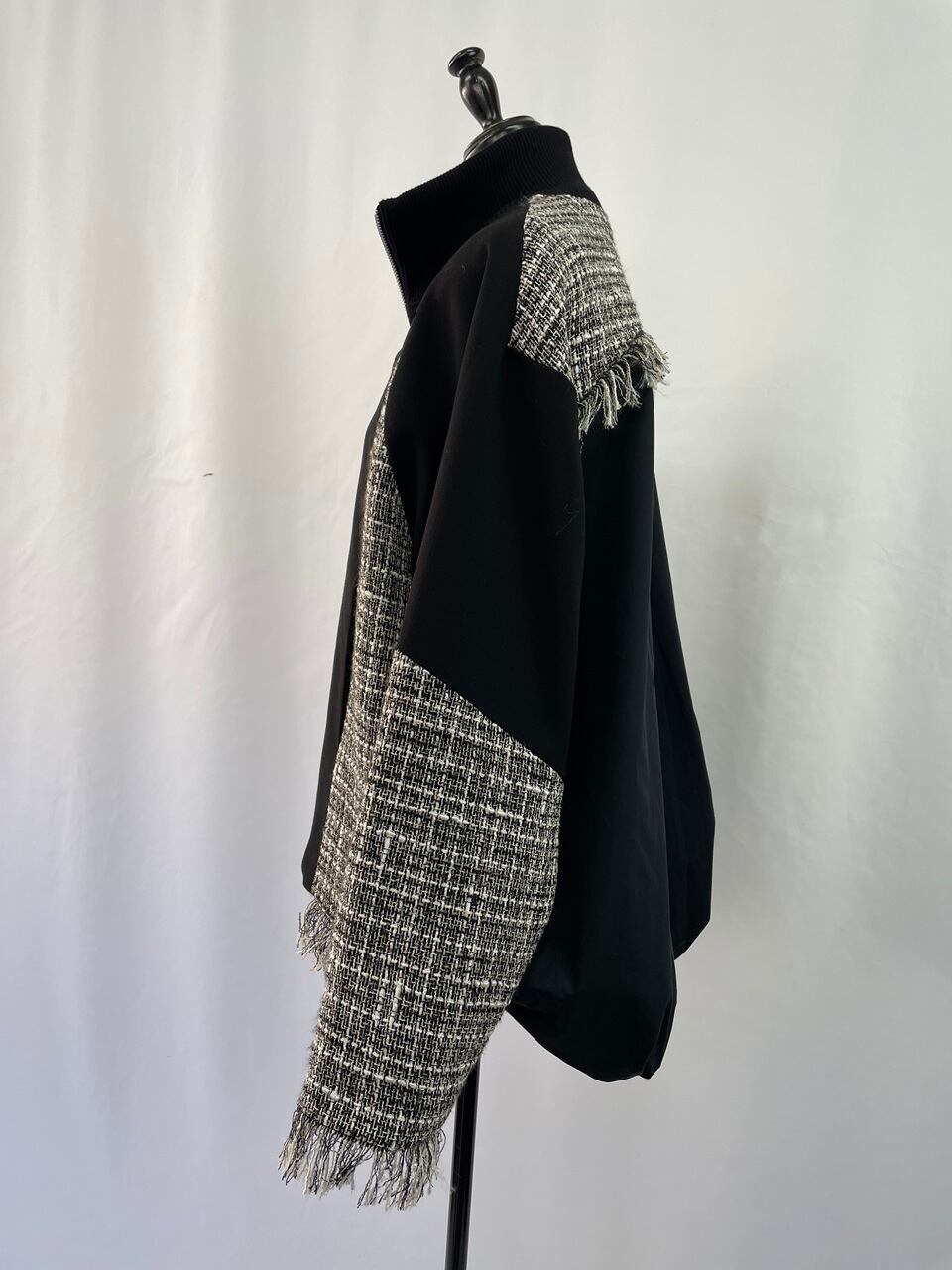 色ごとに印象が大きく変わるアシンメトリーデザインのツイードブルゾン