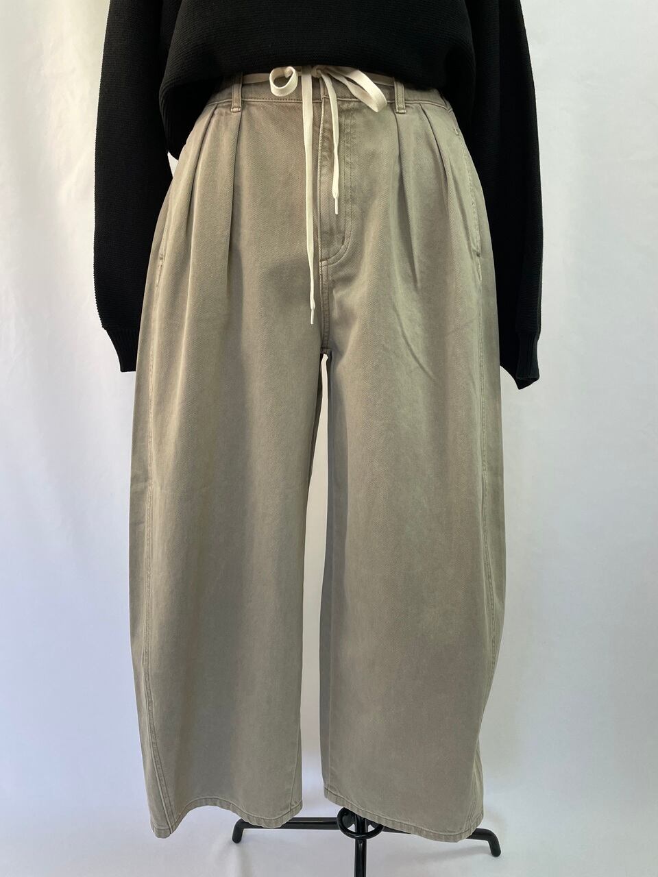 裾にたまるシルエットが可愛いので股下がやや短めの01サイズと股下の長い03サイズがあります。画像は01サイズです。