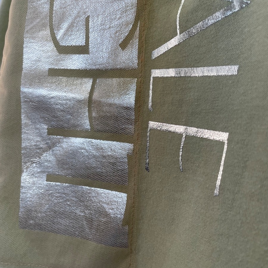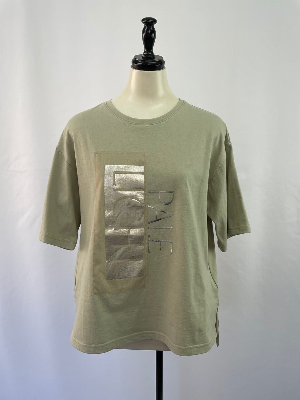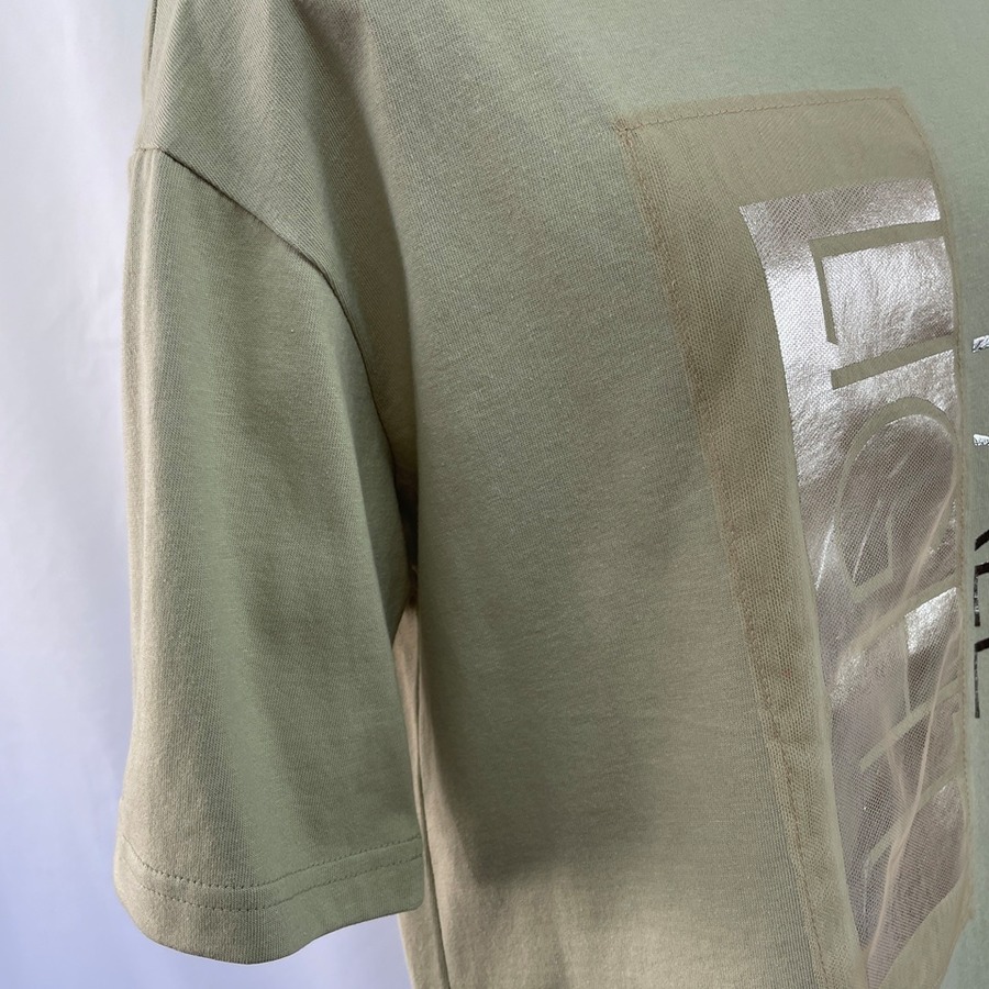 箔のカラーとチュールのカラーの繊細で絶妙なコンビネーションが、大人が着れるロゴTシャツをかなえてくれます。