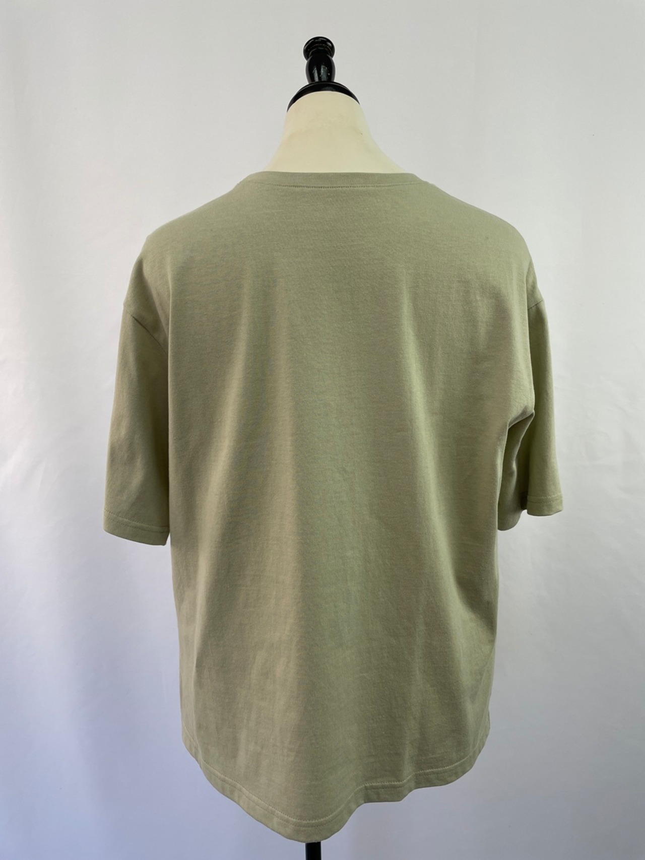 薄手で毛羽のないツルっとしたカット生地には自然なツヤがありカジュアルなTシャツを品よく仕上げています。