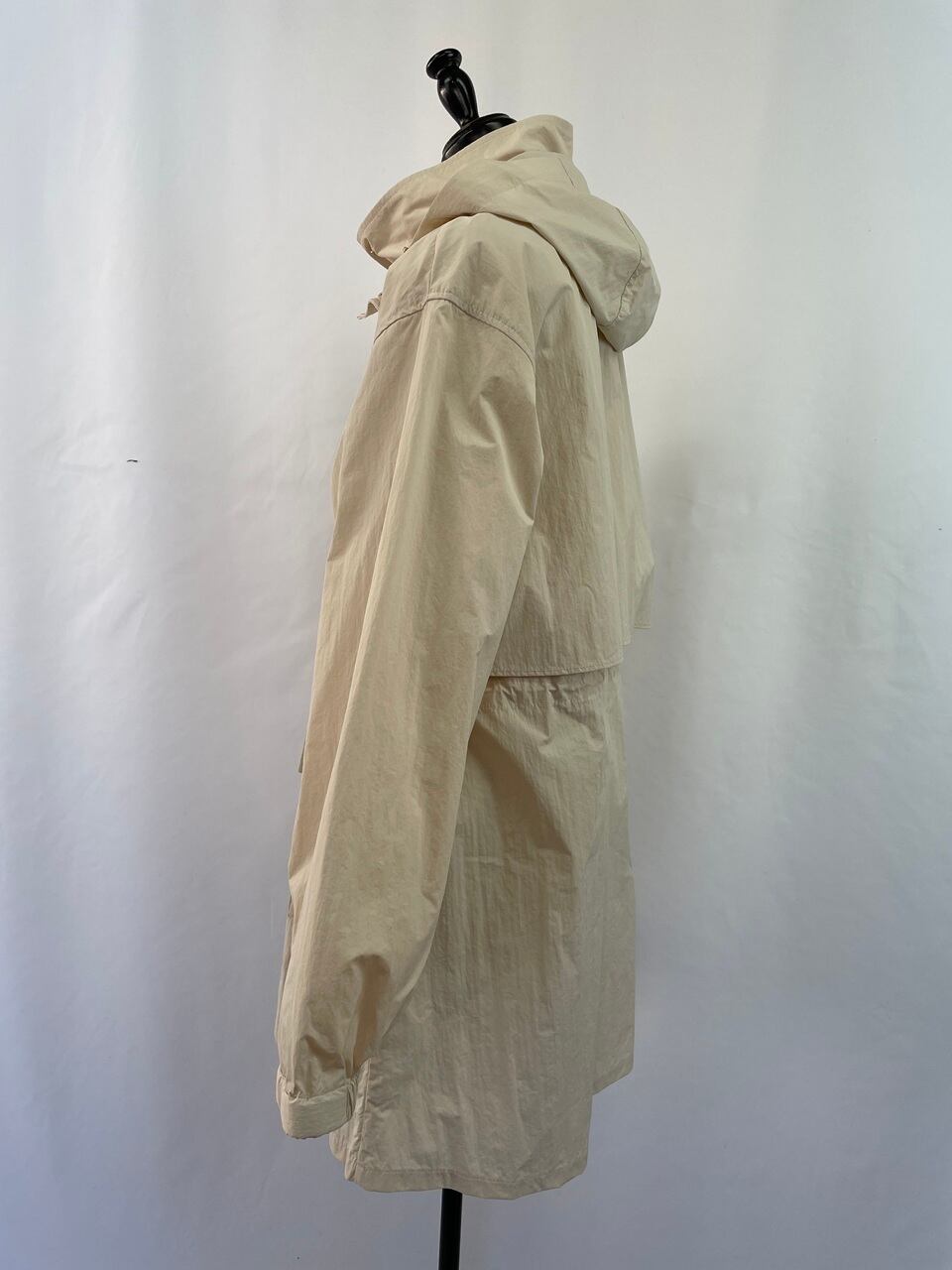 スタンドカラーは開けてきたときに綺麗に見えるように設計されていて、フードは取り外し可能な仕様にしています。
