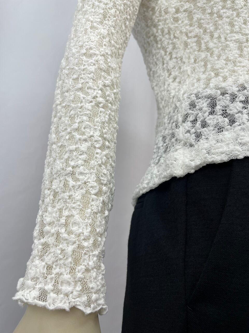 シアー感と体型にフィットするデザインなので重ね着に使うのがおススメ。