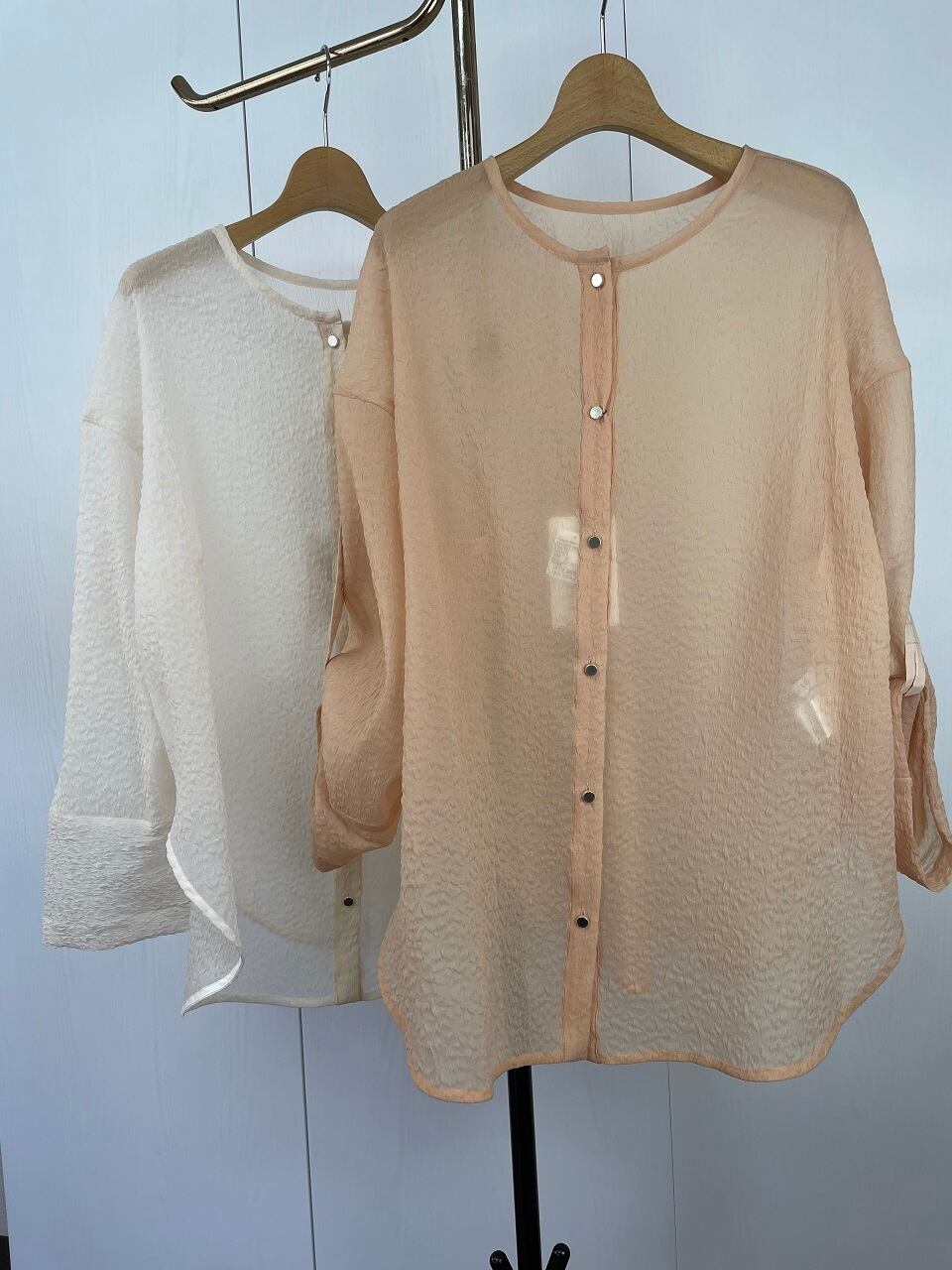 前後着用が可能なシアーブラウス。