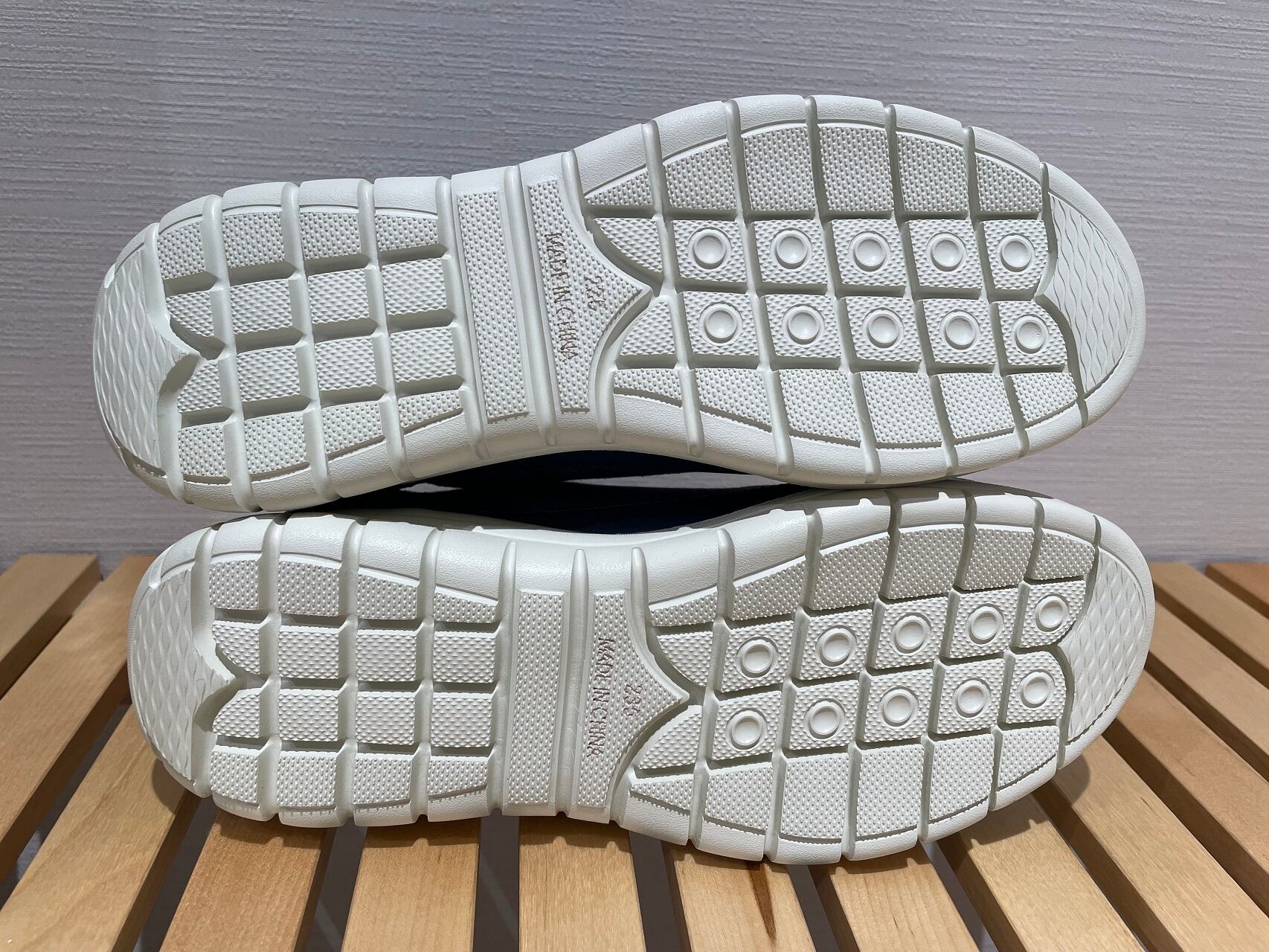 甲部分はヌバック風の人口皮革を使用しているのでカジュアルすぎず、スカートとあわせても〇。軽くて、滑りにくい凹凸のあるソールは返りがよく歩きやすいです。