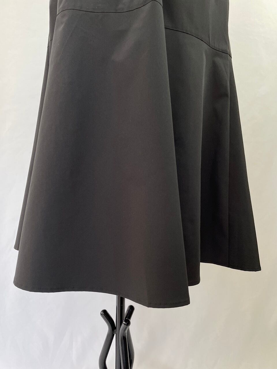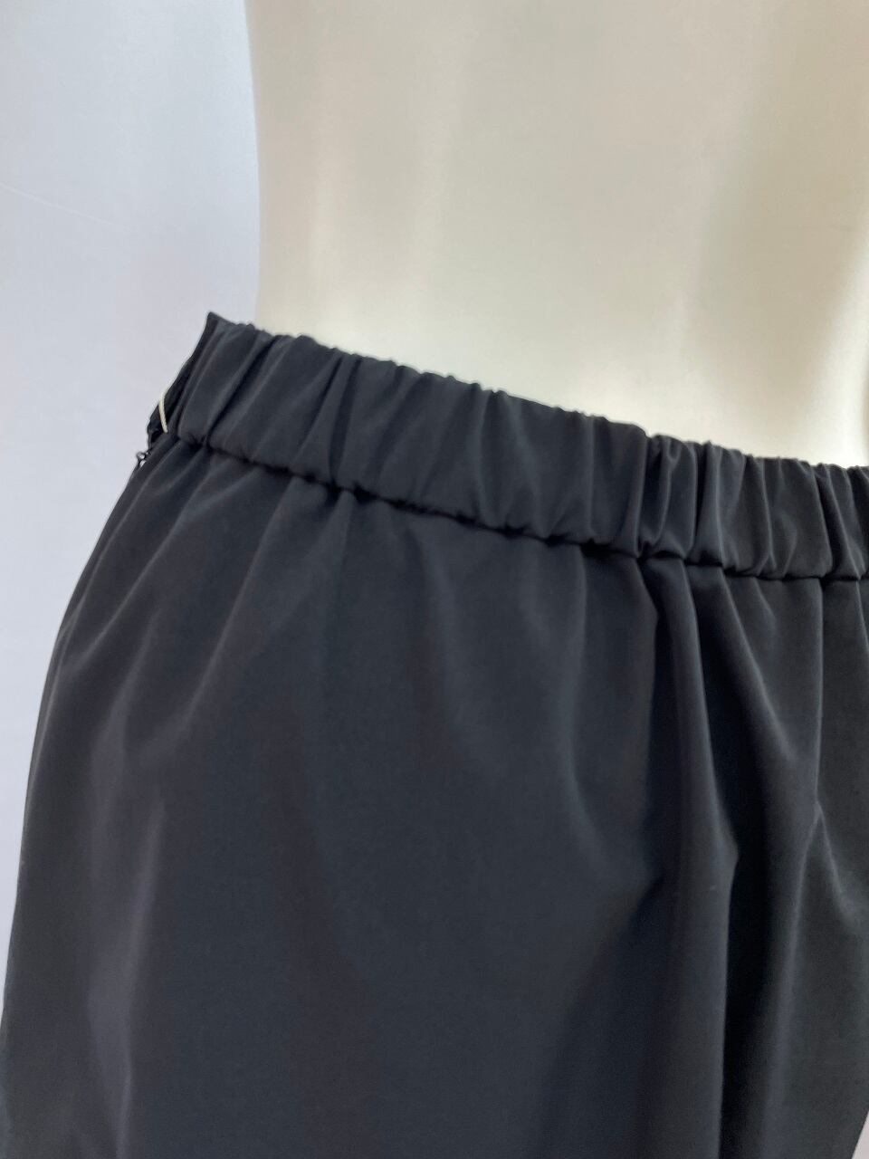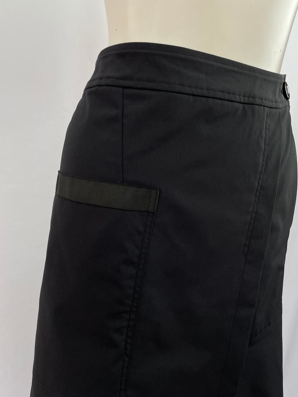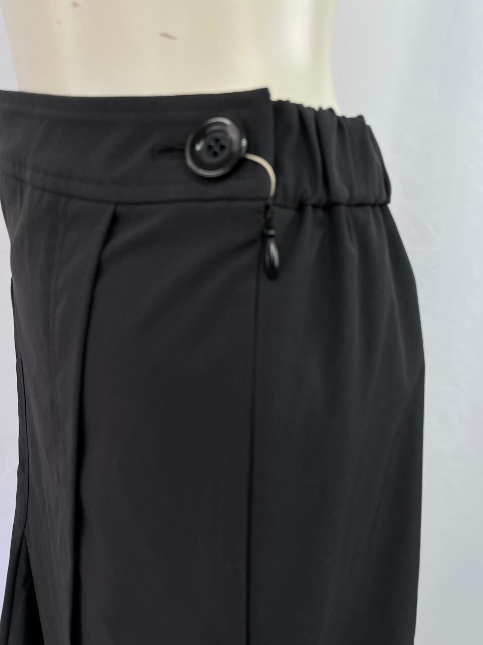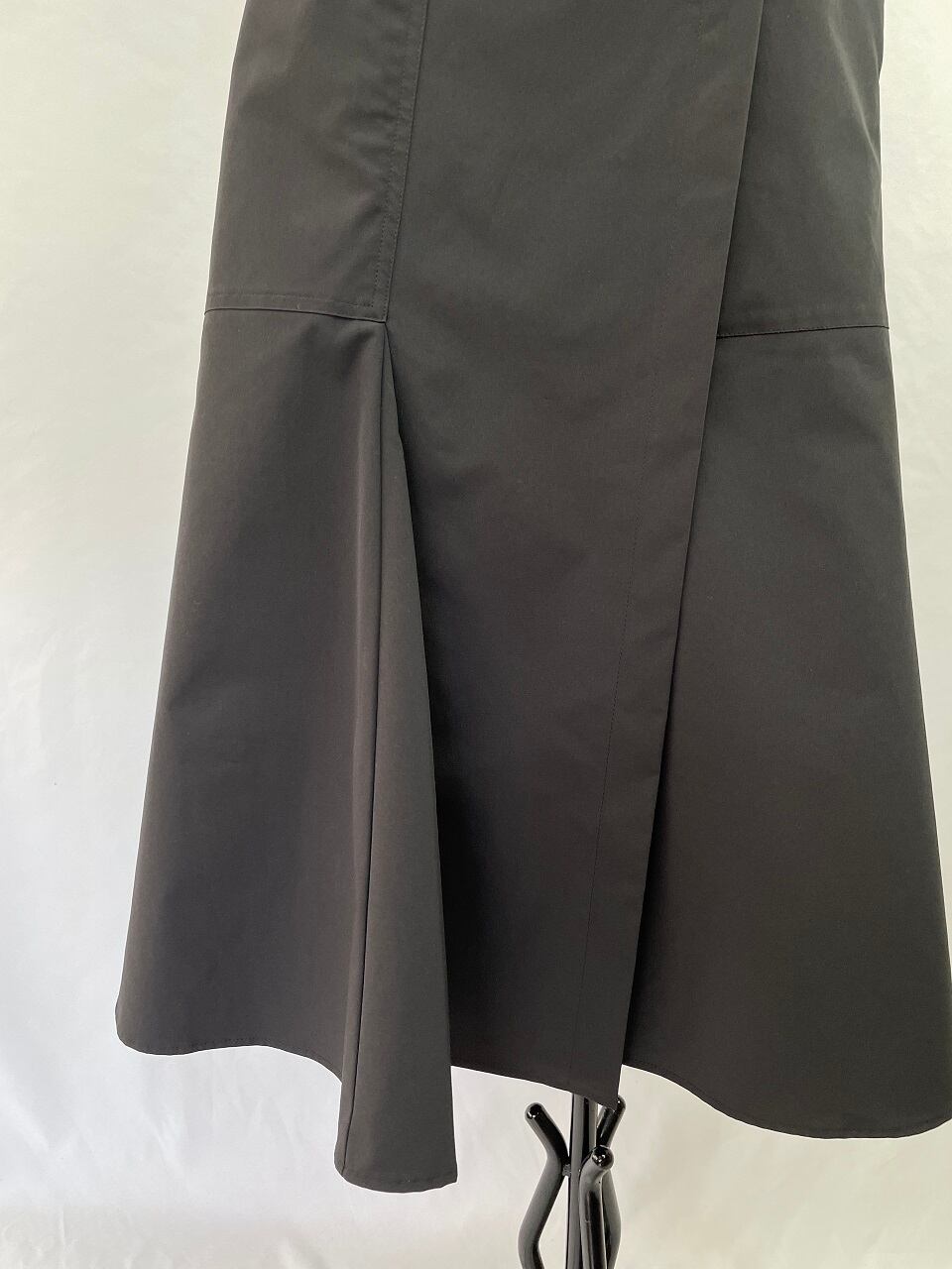 アシンメトリーな巻きスカート風デザインで、裾ペプラムでフェミニンなシルエットですが、大き目のポケット使いがほんのりカジュアルな印象をプラスしてくれます。