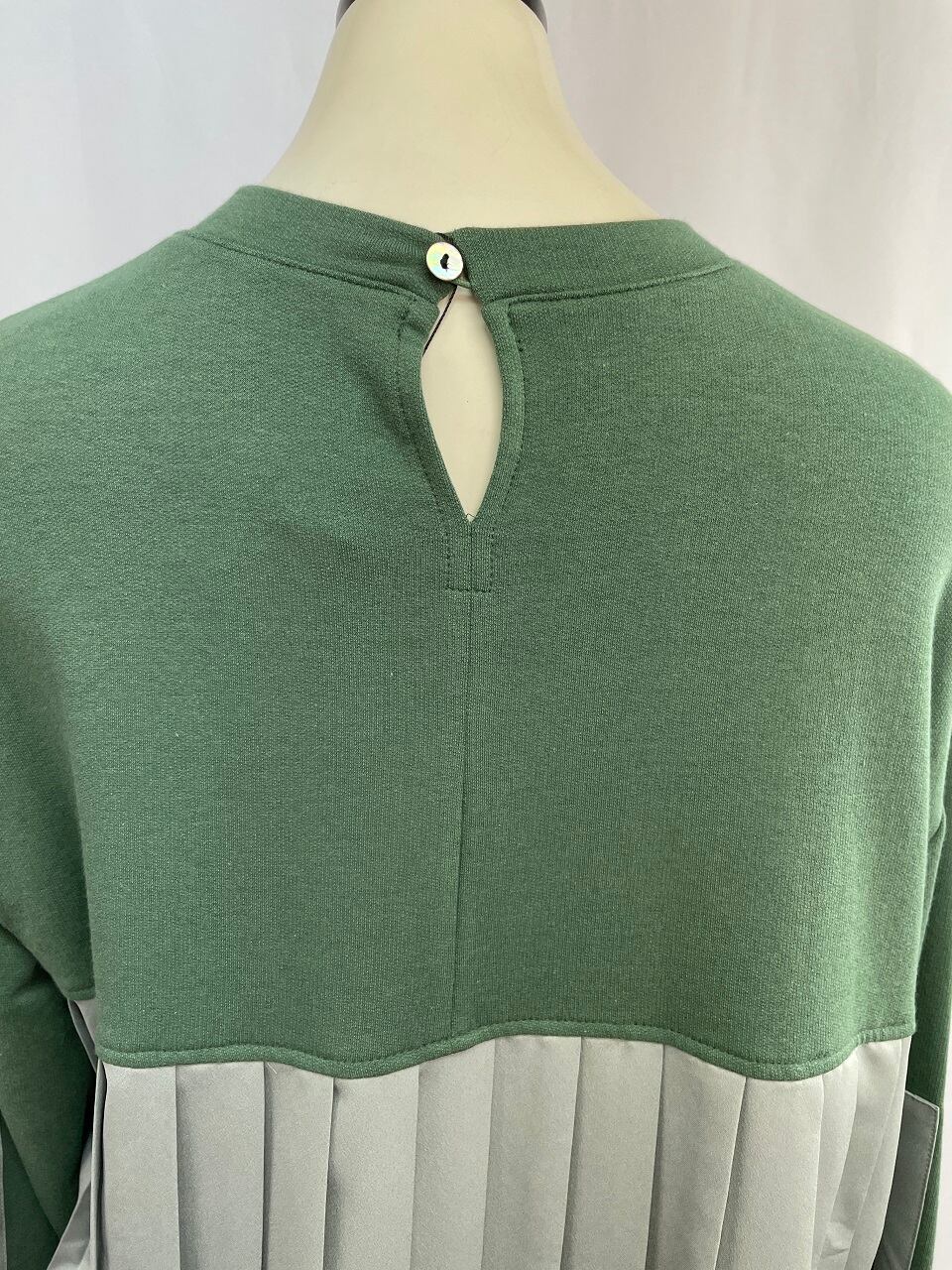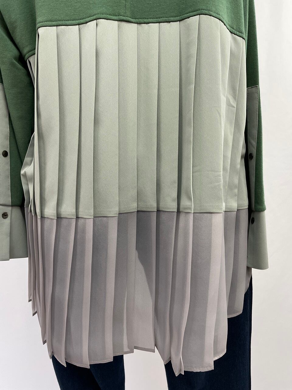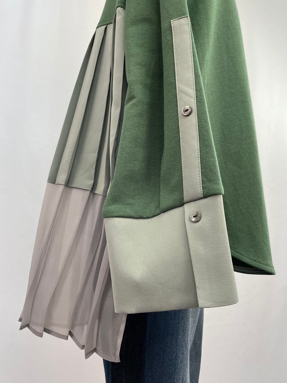 バックシルエットにアイコニックな異素材プリーツをドッキングしたカットソーチュニック。