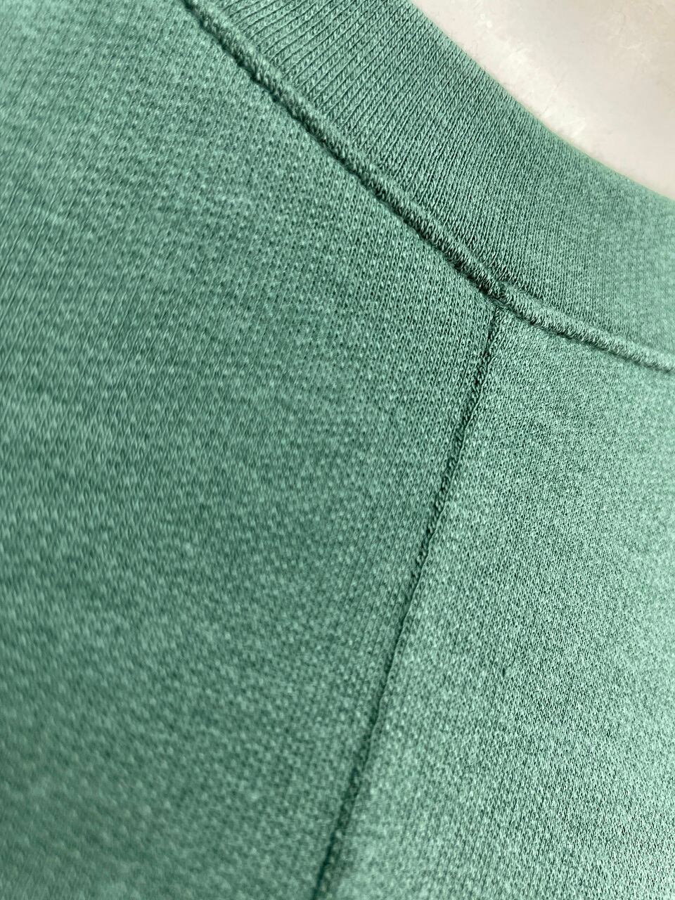 襟ぐりはバックスリット開きで大きく開かず、カジュアルになりすぎない配慮です。