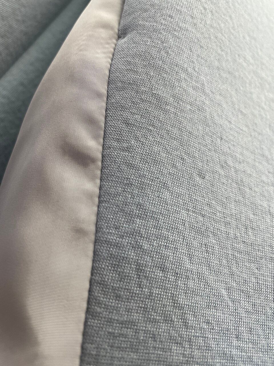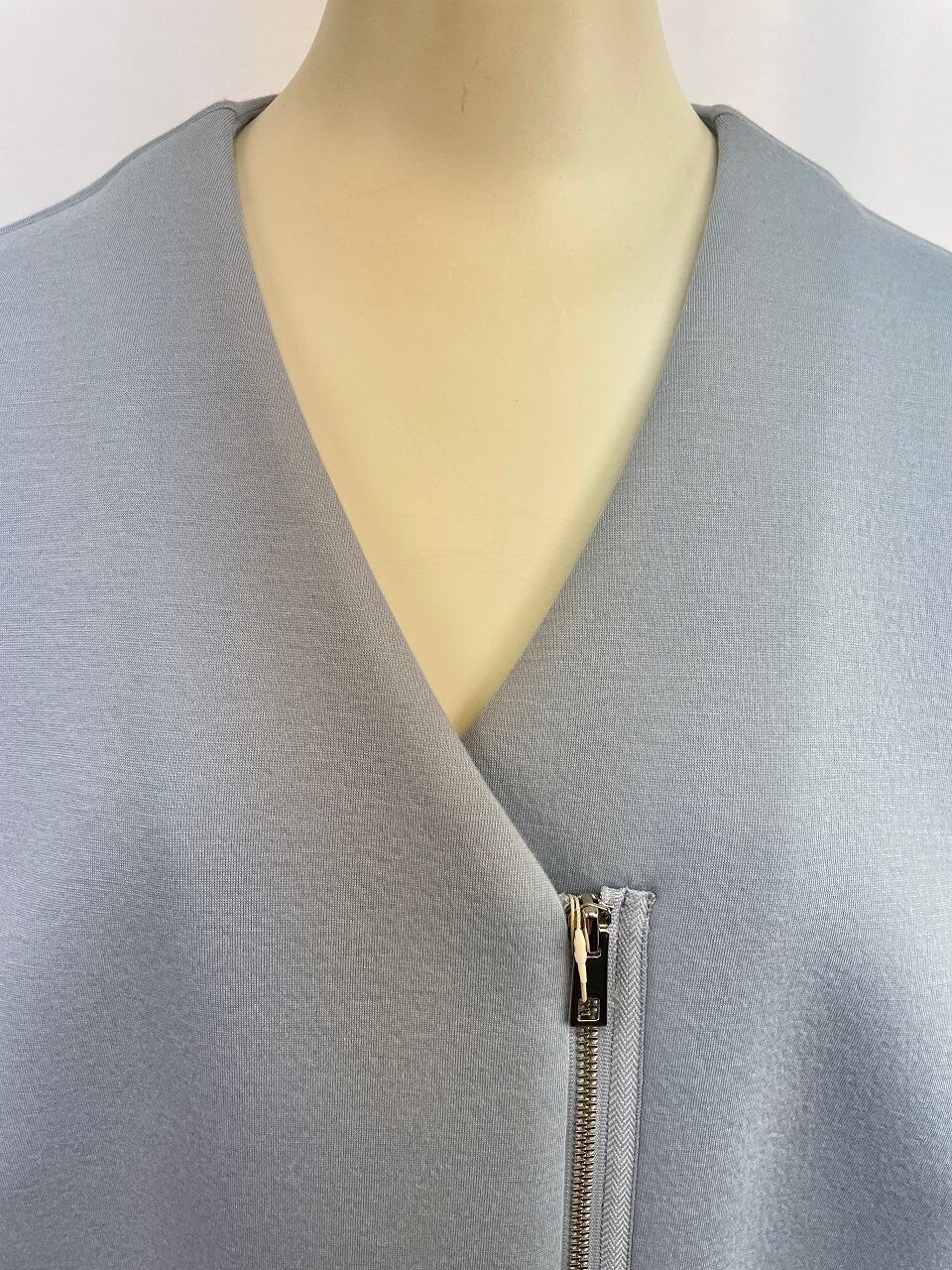 程よい厚みのある軽いダンボール素材を使用したフロントジップのVネックコート。