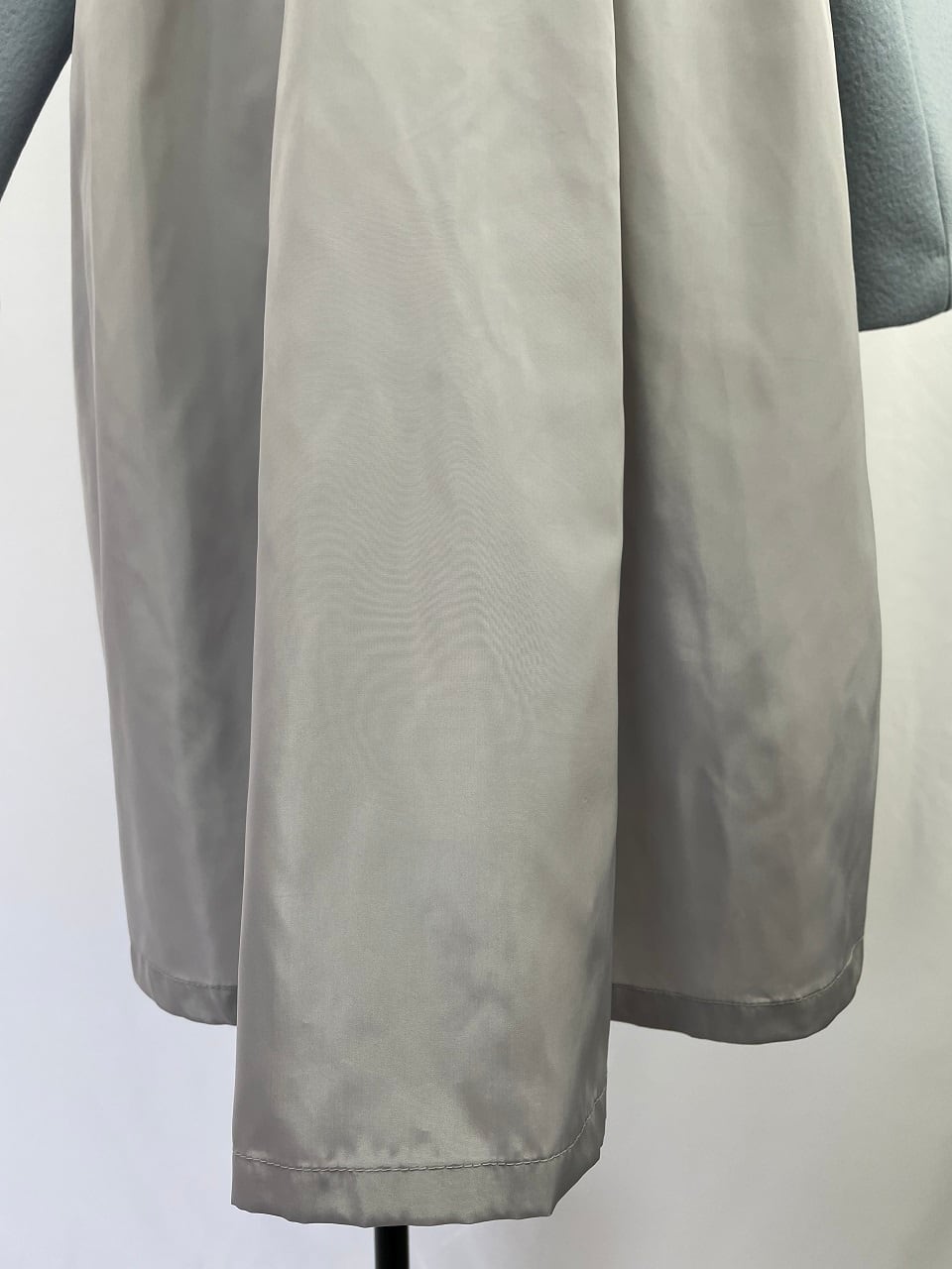 後ろ身頃にタフタ素材をドッキングしてバックシャンなデザイン。